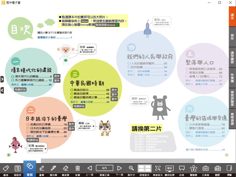 版 社會電子書 5年級(含課本、習作含解答、課堂練習、作業簿含解答、學習評量單)教學光碟(2片裝)