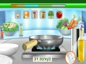 指示下完成諸如選擇配料、混合、打雞蛋、切割、油炸、開罐頭等烹飪步驟,期間玩家